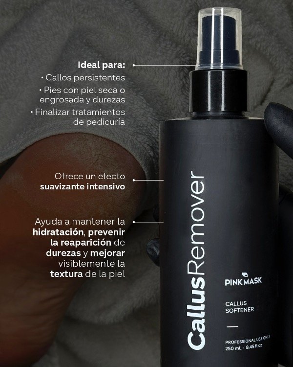 Callus Remover es un ablandador de callos profesional, penetra rápidamente en las zonas más duras de la piel, facilitando la remoción de callos y dejando los pies suaves, hidratados y renovados.