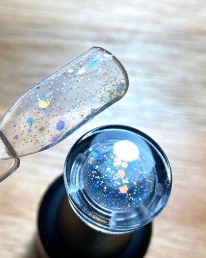 El Top Coat Glitter es soak-off y te permite convertir cualquier color en Glitter. Le da un acabao hermoso a cualquier color.