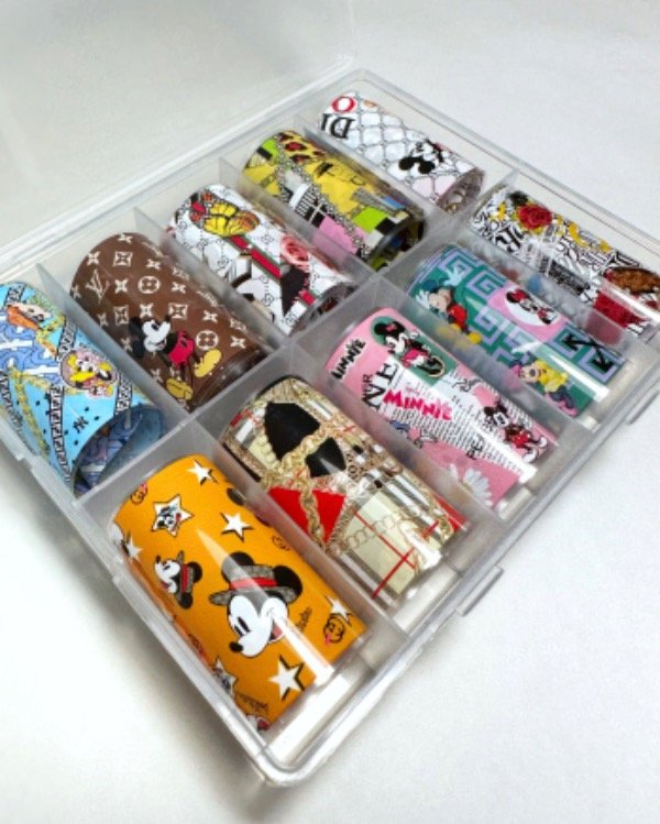 Caja de plástico con 10 diseños diferentes.